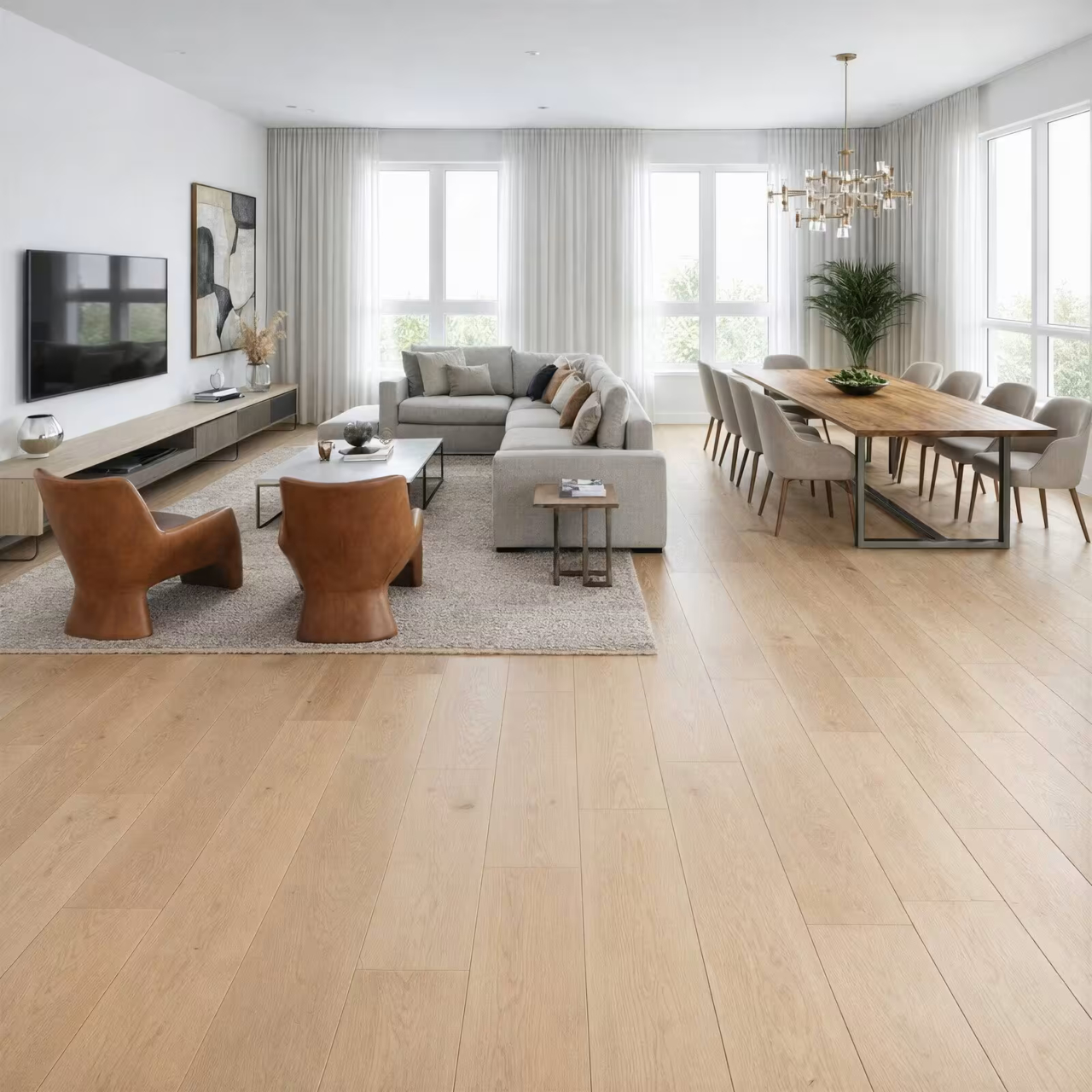 60 % des lames sont en longueurs fixes de 2,20 m : le rendu est fluide, élégant et donne une vraie impression d’espace. C’est le choix parfait pour les grandes pièces de vie ou les rénovations haut de gamme.